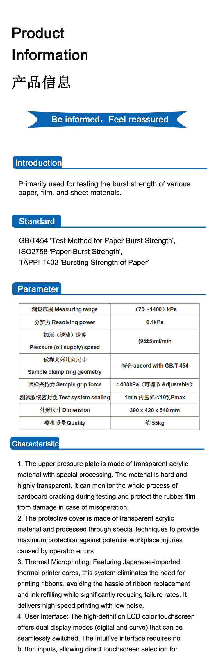 Primarily used for testing the burst strength of various paper, film, and sheet materials.